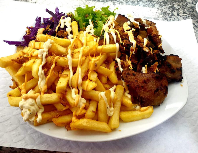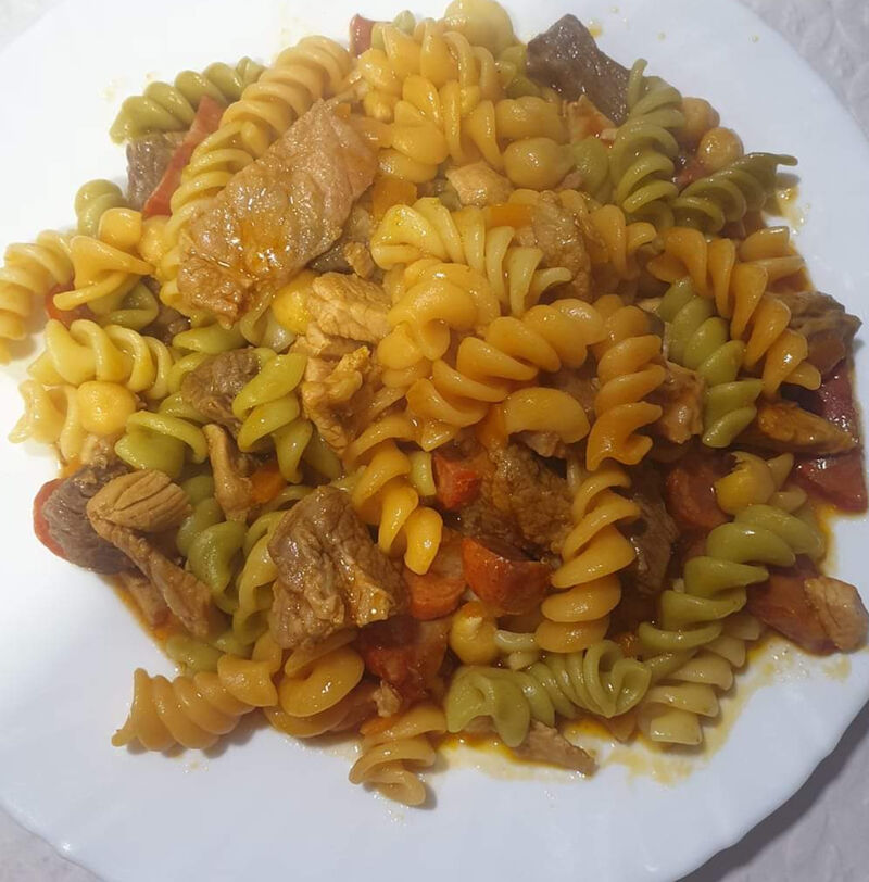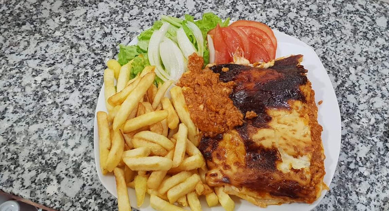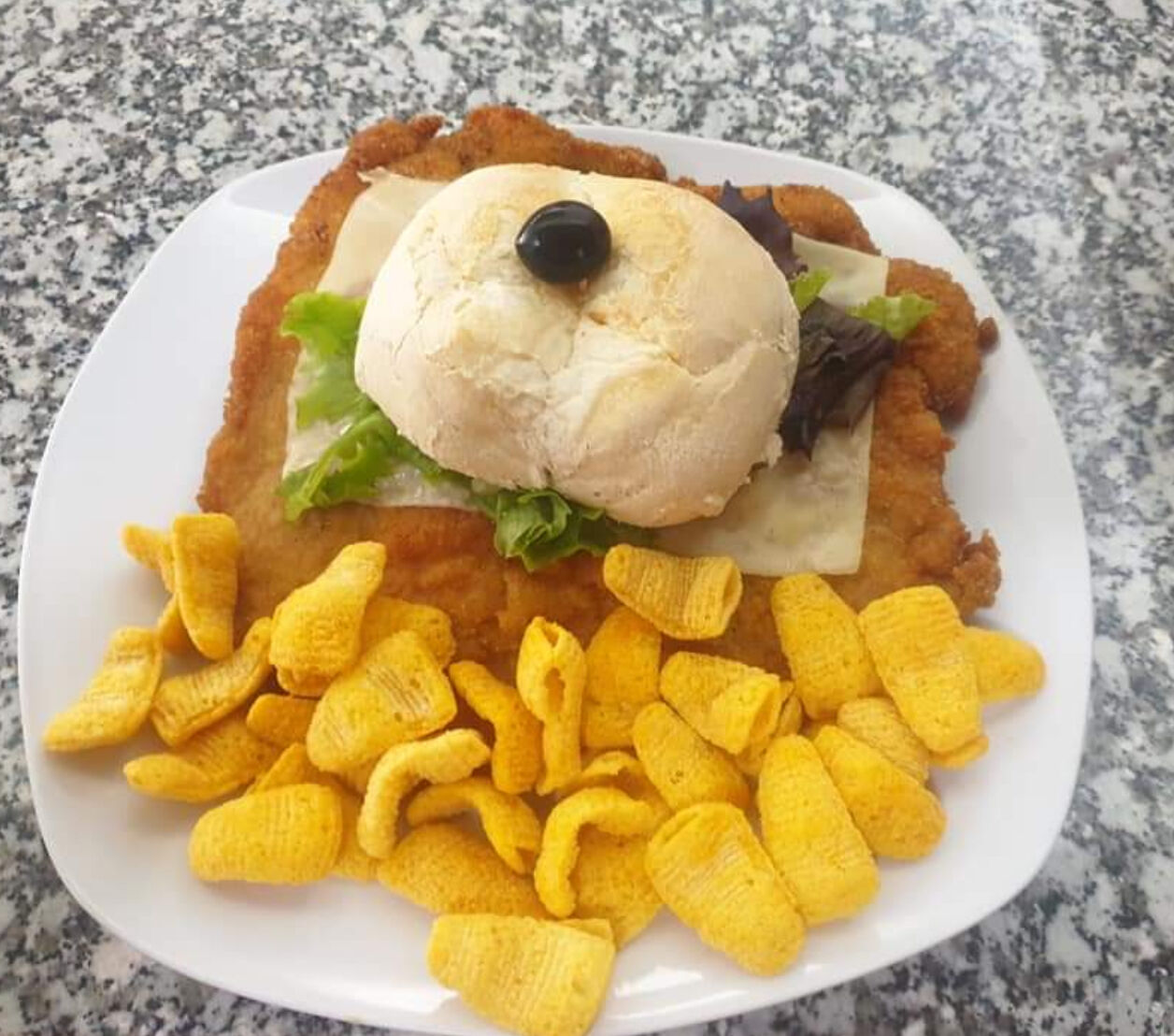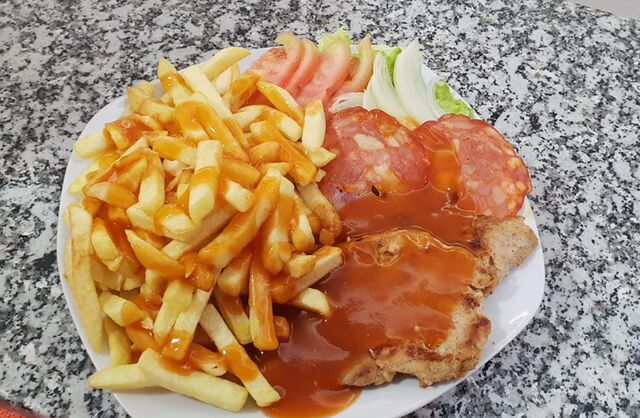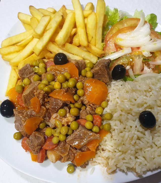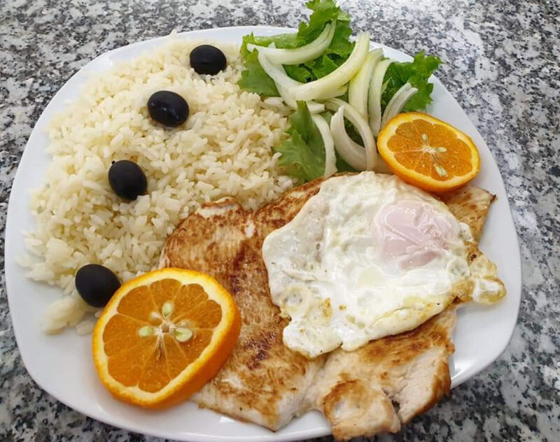 Sopa , Pão, Prato carne ou peixe, bebida e café